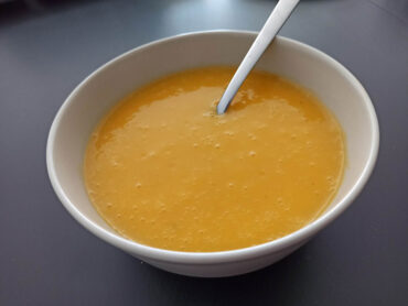 Le butternut est une courge de la famille des cucurbitacées. Avec son gout tout doux et sa jolie couleur orange, il est un véritable allié pour faire manger des légumes aux enfants. Il s’agit d’un légume peu calorique et riche en vitamine notamment A et C. Sa pleine saison de consommation est d’octobre à janvier. Il se prépare de bien des façons mais j’ai choisi de vous en présenter la plus simple: le velouté.